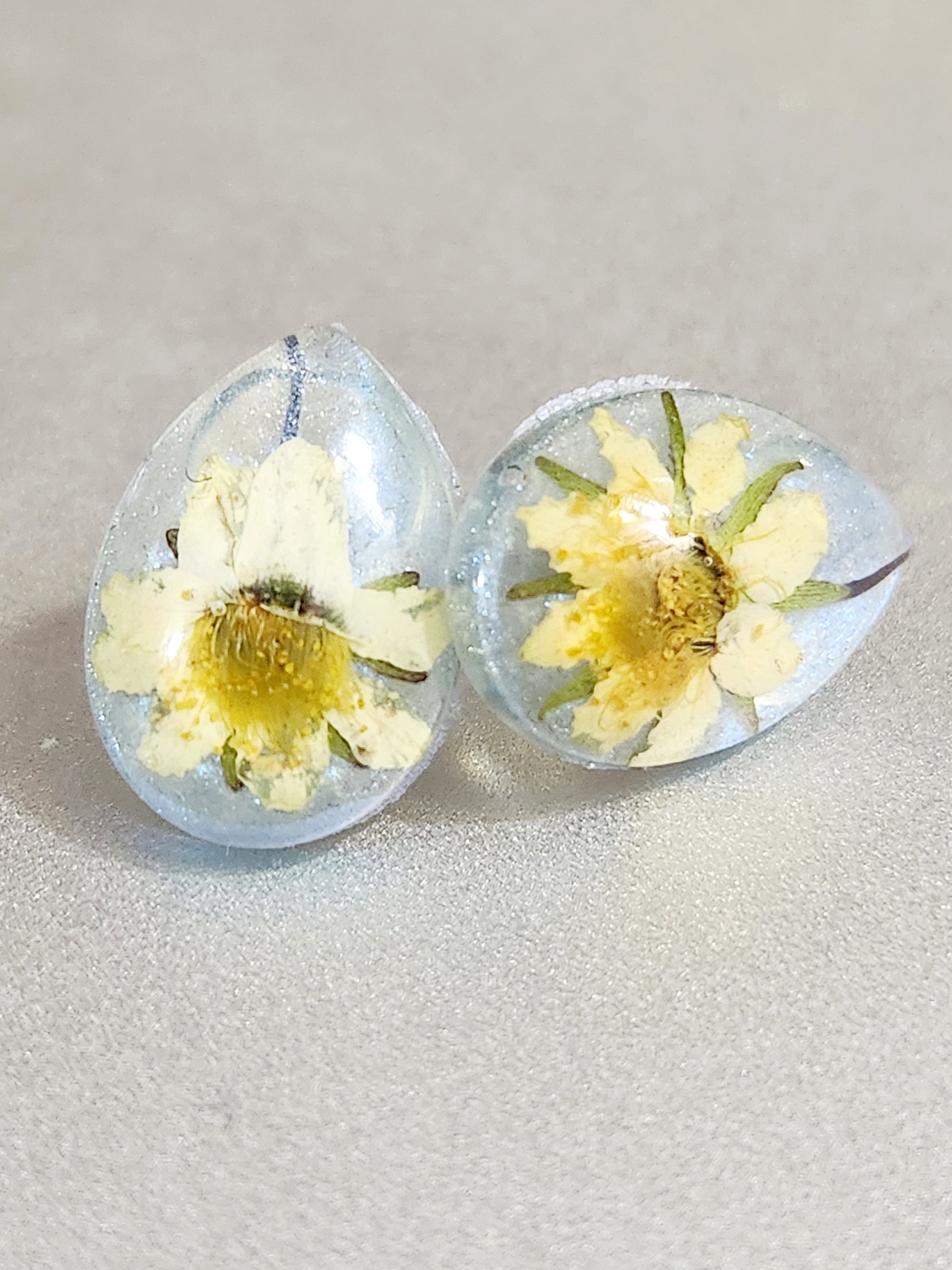 Unique little tundra flowers studs - in cute shapes with cutier plants- extremely unique each one is made different each time so get these while you can!! All pairs have silicone posts so very hypoallergenic and safe to wear.